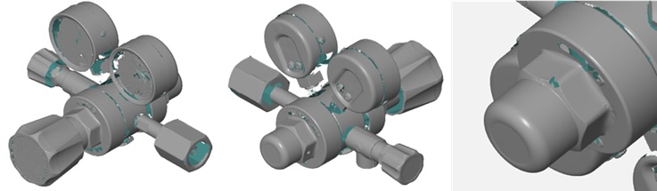しかしながら、カメラ式3Dスキャナは奥まった箇所や微細な形状のスキャンは得意ですので、スプレーの塗布がOKであれば有用な装置かと思います。
