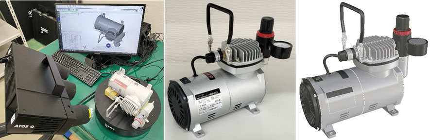 当社では多種多様な工業製品について3Dリバースエンジニアリングを行っております。今回のブログではエアーコンプレッサーについて3Dスキャン・3DCADデータ化を行った事例をご紹介します。